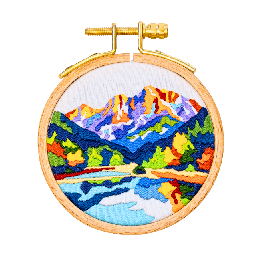 I stitched this piece in a 4” Nurge hoop and am displaying it in a 2.75” Hardwicke Manor hoop.